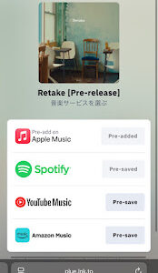 下記URL「Apple Music」「Spotify」「Amazon Music」「YouTube Music」からお好きなサービスの「Pre-add」または「Pre-save」をタップ